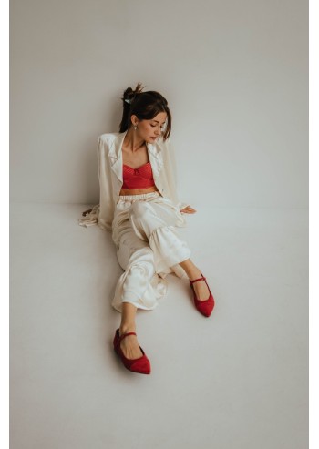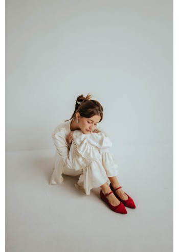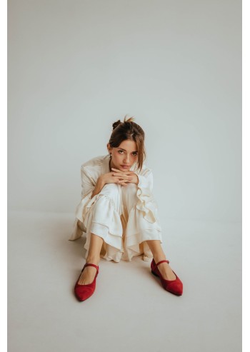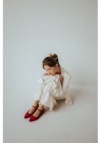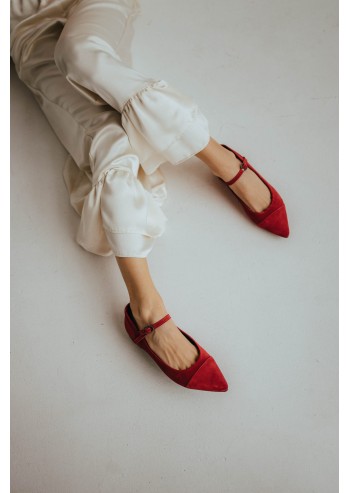 Modern and romantic Mary Janes—sleek lines, soft texture, and a striking red color—deliver all-day comfort.