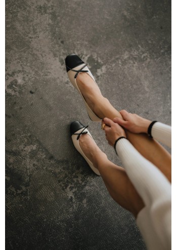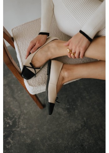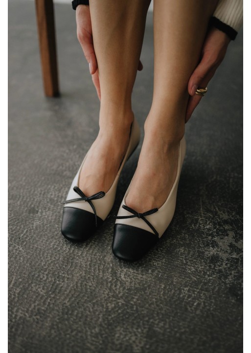 An ivory upper and black toe cap create a classic, statement-making contrast that elevates any outfit.