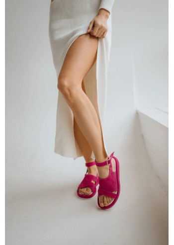 A vibrant raspberry pink upper adds a pop of color to any look.