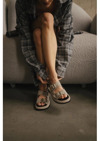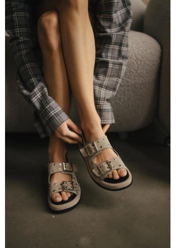 These slip-on sandals combine comfort with stylish hardware—perfect for casual days, coffee breaks, and weekend strolls.