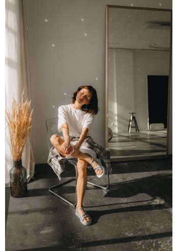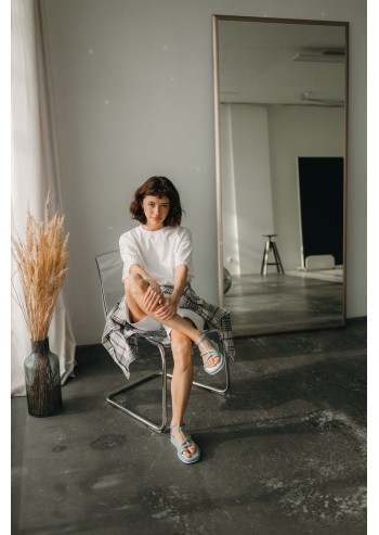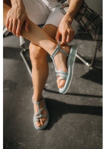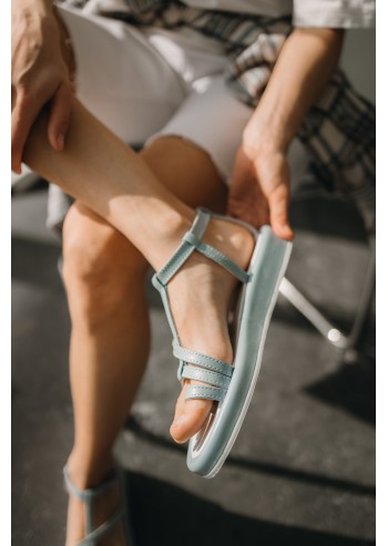 A simple T-strap design with asymmetrical straps provides secure support and a lightweight, flattering feel.